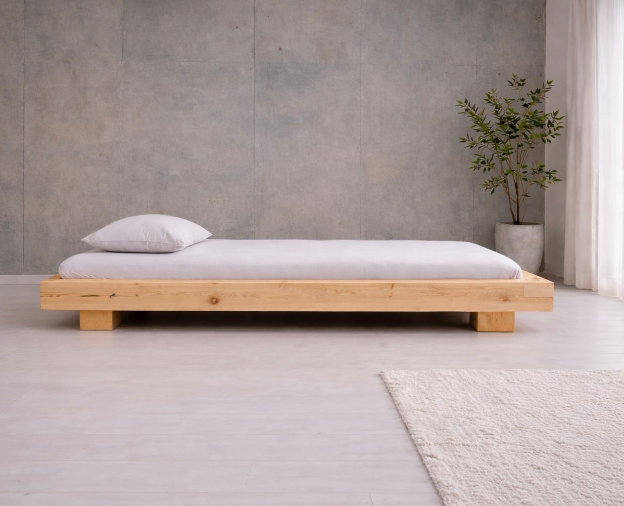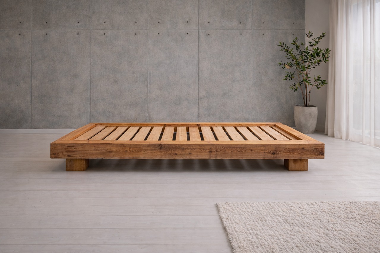 無垢材の頑丈木製ベッド|サイズオーダー対応|高身長の方にもおすすめ
