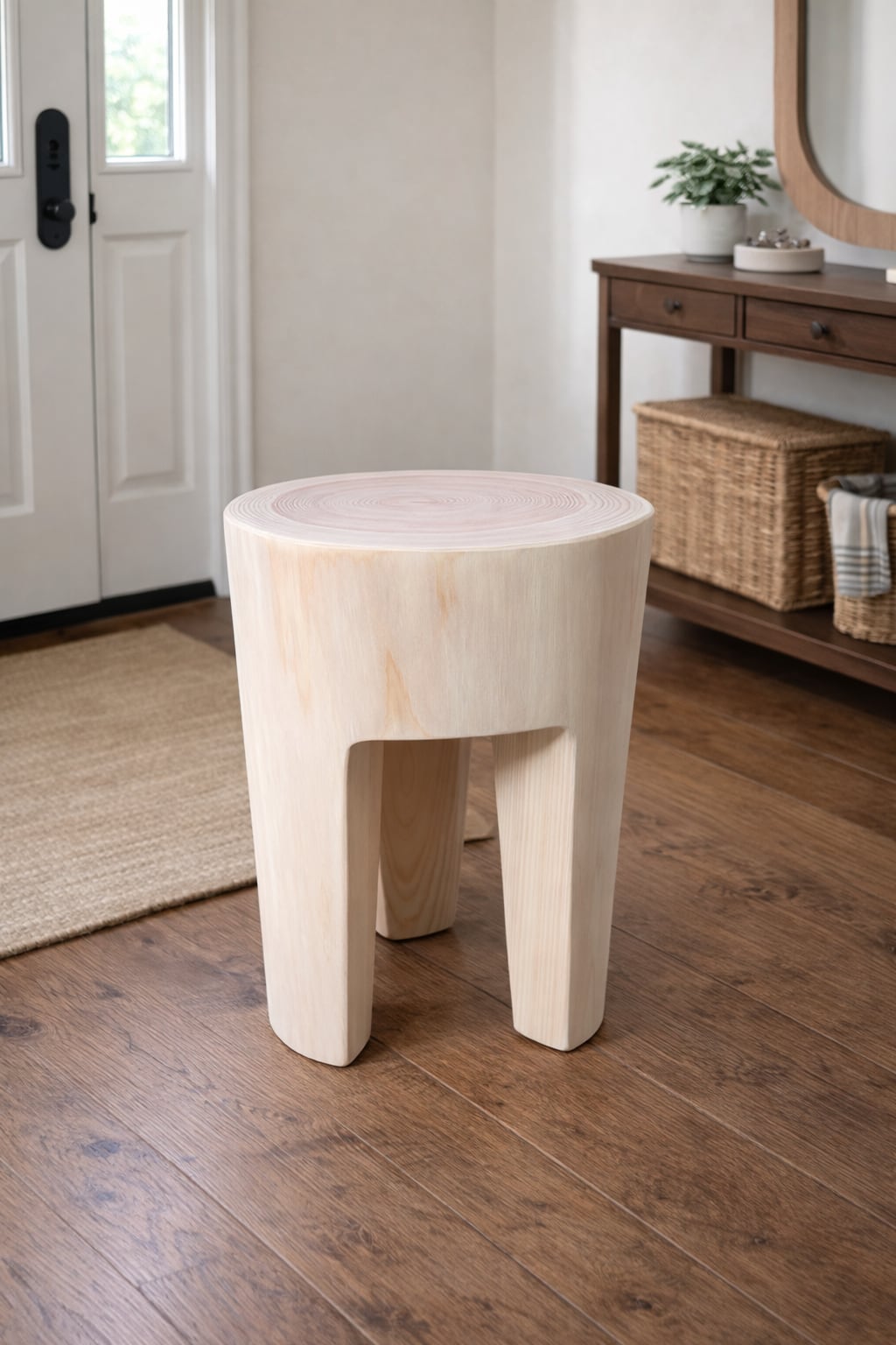 国産ヒノキを贅沢に使い、丸太から一脚ずつ削り出した天然無垢スツールです。